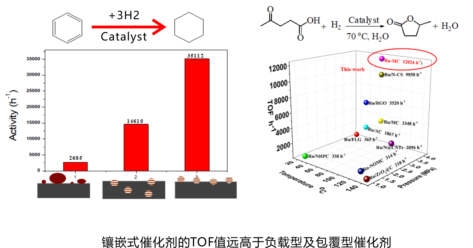 本团队聚焦于液相加氢催化剂的技术革新,旨在突破现有催化剂体系中的核心困境,针对传统负载型催化剂在反应过程中金属易流失、稳定性不足的问题,以及包覆型催化剂因金属包覆过度导致活性位点不能暴露的问题,我们创新性地开发了镶嵌式催化剂结构。该催化剂通过将活性金属纳米颗粒精准镶嵌于炭骨架之中,既有效抑制了金属流失,又保障了活性位点的充分暴露与高效利用,同时可以实现镶嵌度的调控,为液相加氢工艺提供了更为稳定、高效的新型催化剂解决方案。