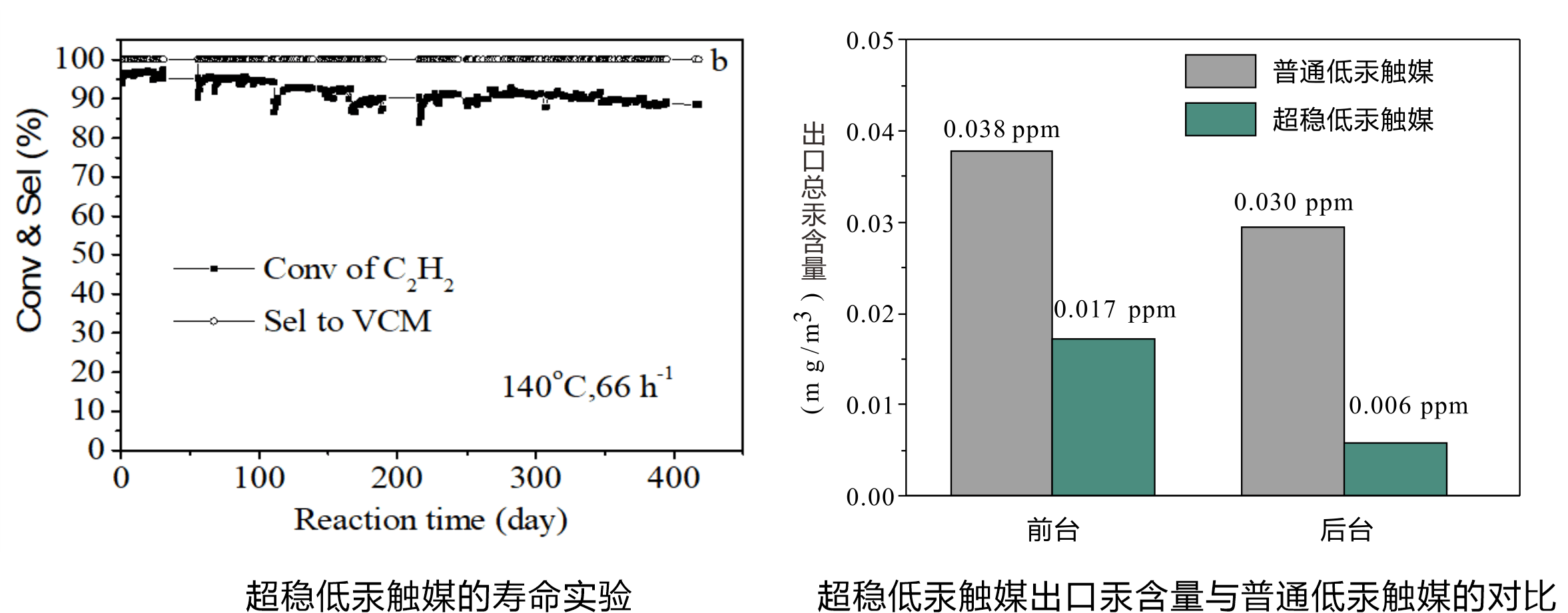 (3)超稳低汞触媒热稳定性优异,每吨PVC的汞排放量远低于国家环保规定的C级标准(SHg<36g/吨PVC),具有显著的环保效益;