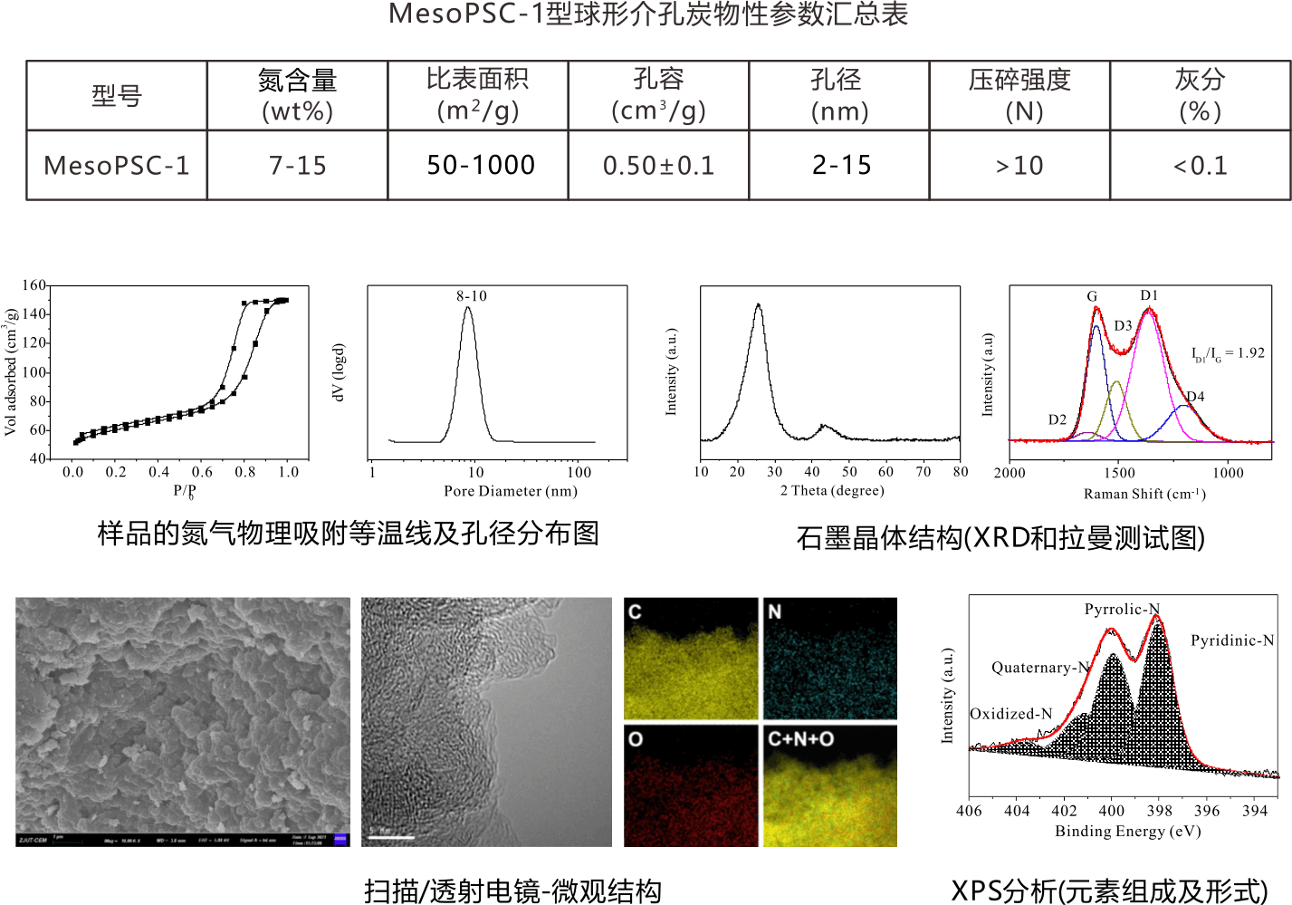 MesoPSC-1是一款氮掺杂球形介孔炭材料,粒径为0.5-2mm,比表面积可从50-1000m²/g范围内定向设计合成,氮含量7-15%,孔径可在2-15nm之间调控。 建议应用领域: ① 气液相净化; ② 炭基非金属催化剂; ③ 贵金属催化剂载体; ④ 贵金属回收; ⑤ 血液净化等; ⑥ 军用防护; ⑦ 医疗健康;